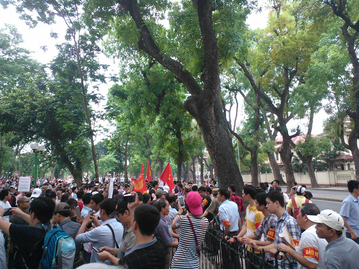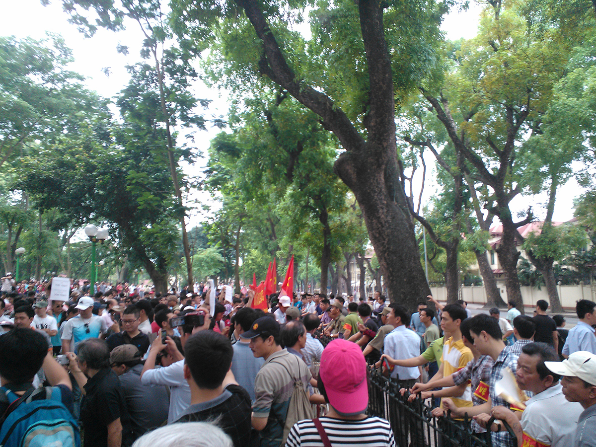 Sáng 11/5/2014, hàng nghìn người Hà Nội đã tập trung trước cửa đại sứ quán Trung Quốc ở 46 Hoàng Diệu, Ba Đình, Hà Nội để phản đối Trung Quốc đưa giàn khoan HD981 vào vùng đặc quyền kinh tế và thềm lục địa Việt Nam.